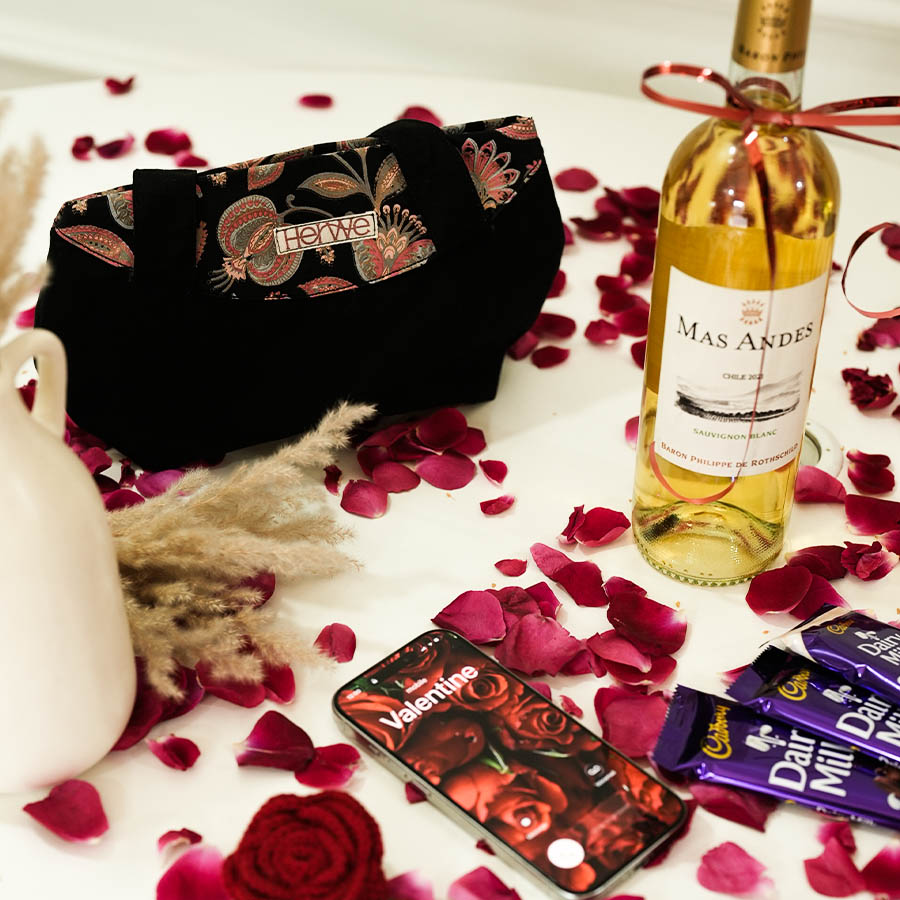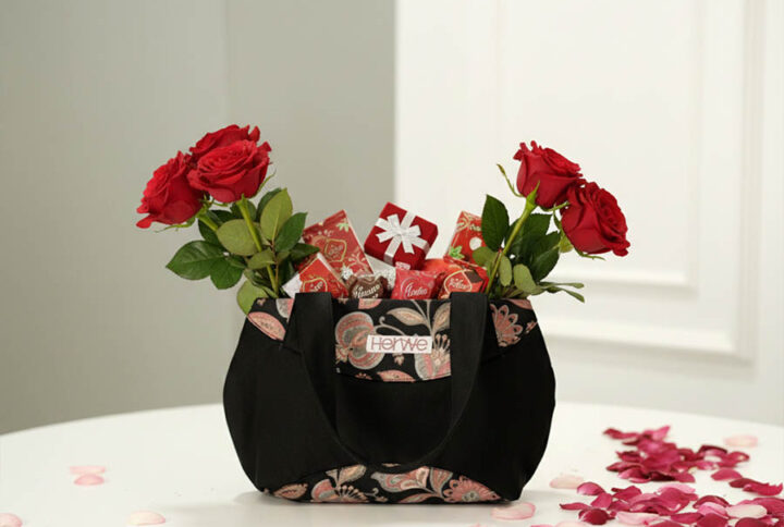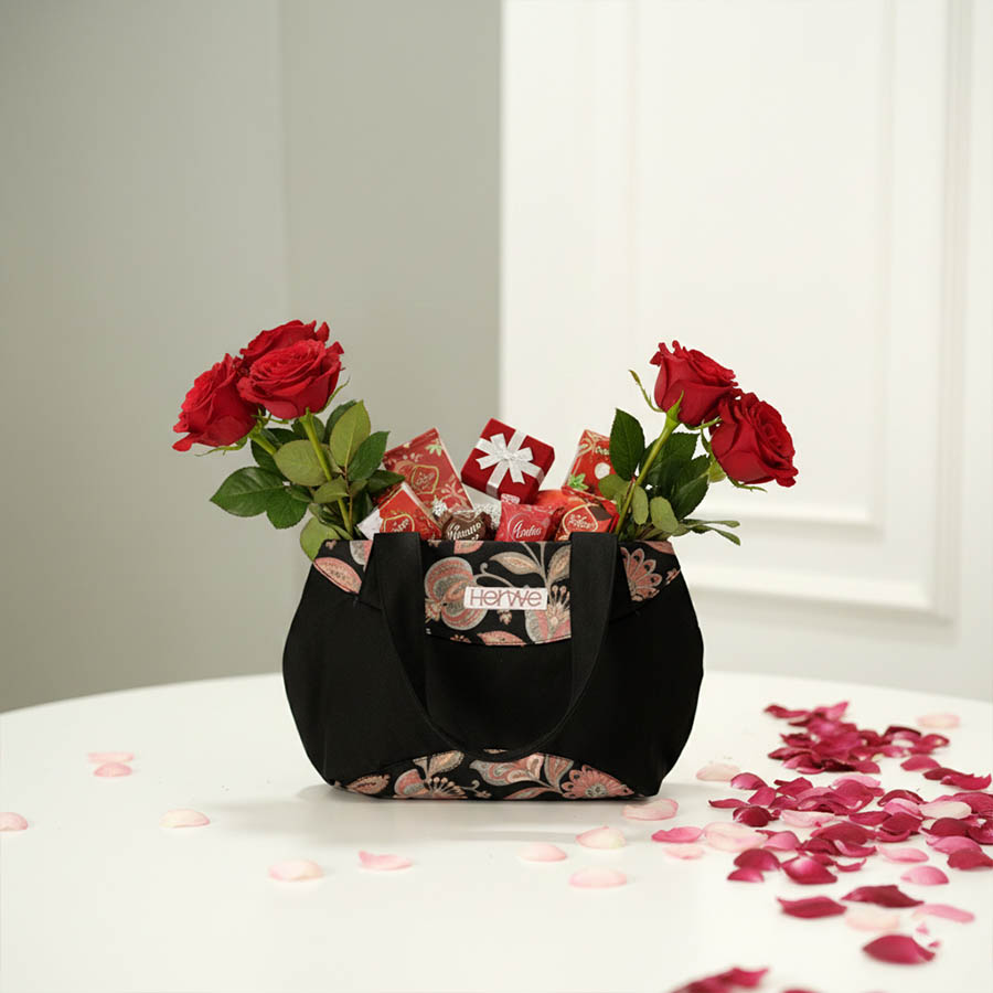 A sleek 8×10″ black bag with subtle floral detailing for a refined look. Comes with a secure zip closure and shoulder-friendly handles. Spacious interior fits your essentials effortlessly.