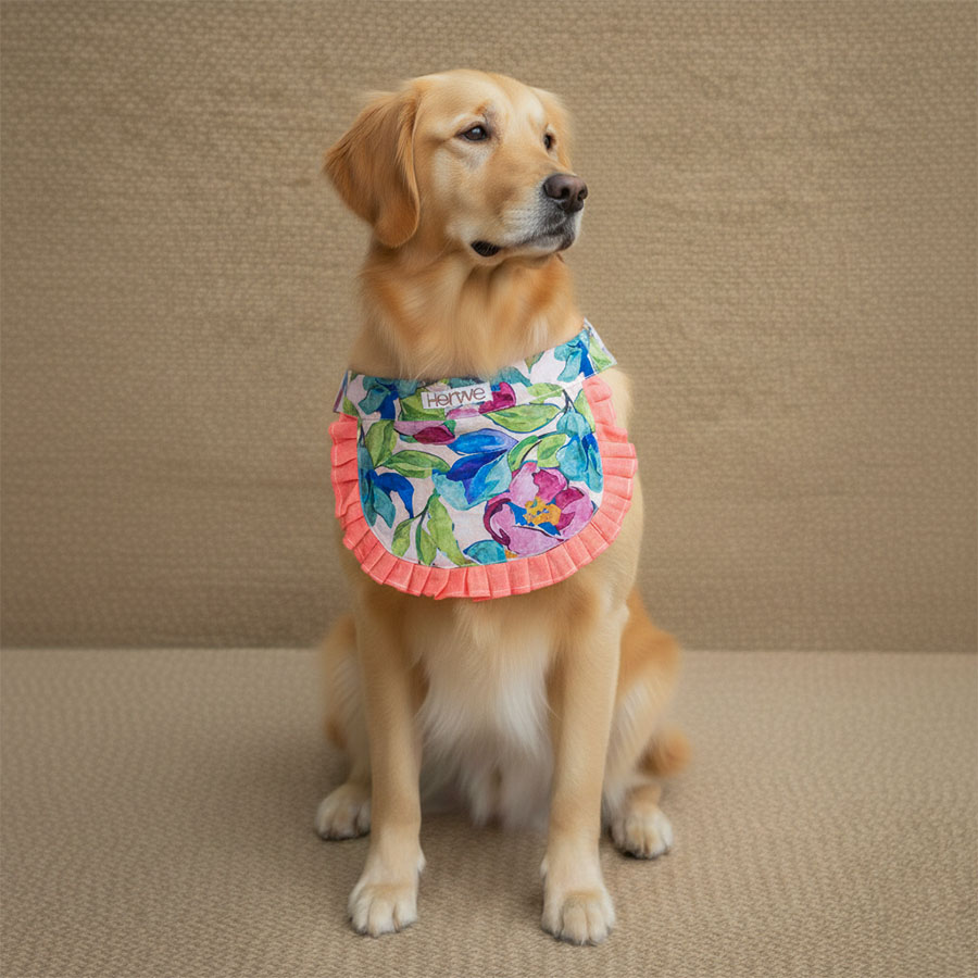Delicate and adorable, this floral bib is finished with charming frill detailing for a sweet, couture-inspired look. Designed with an easy velcro closure, it offers a secure yet comfortable fit around your pet’s neck. Lightweight and gentle, it’s perfect for everyday wear or special occasions when your pet deserves a little extra style. 🌸🐾